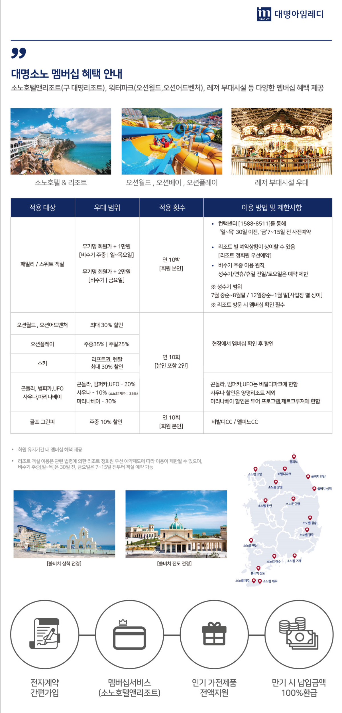 전국 소노호텔앤리조트(구:대명리조트)를 납입기간 동안 연간 10박 제공
