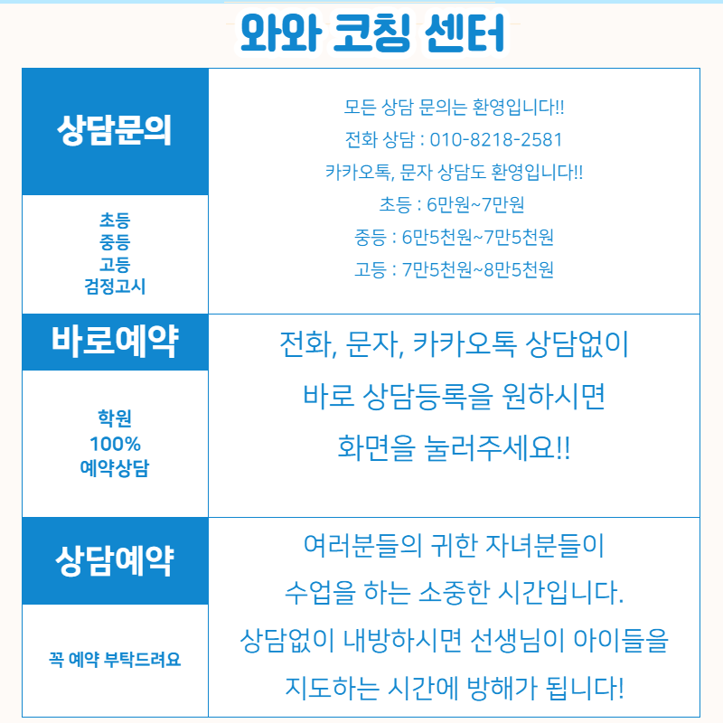 와와학습코칭학원 서울서부교육지원청 등록 제 0220170112호